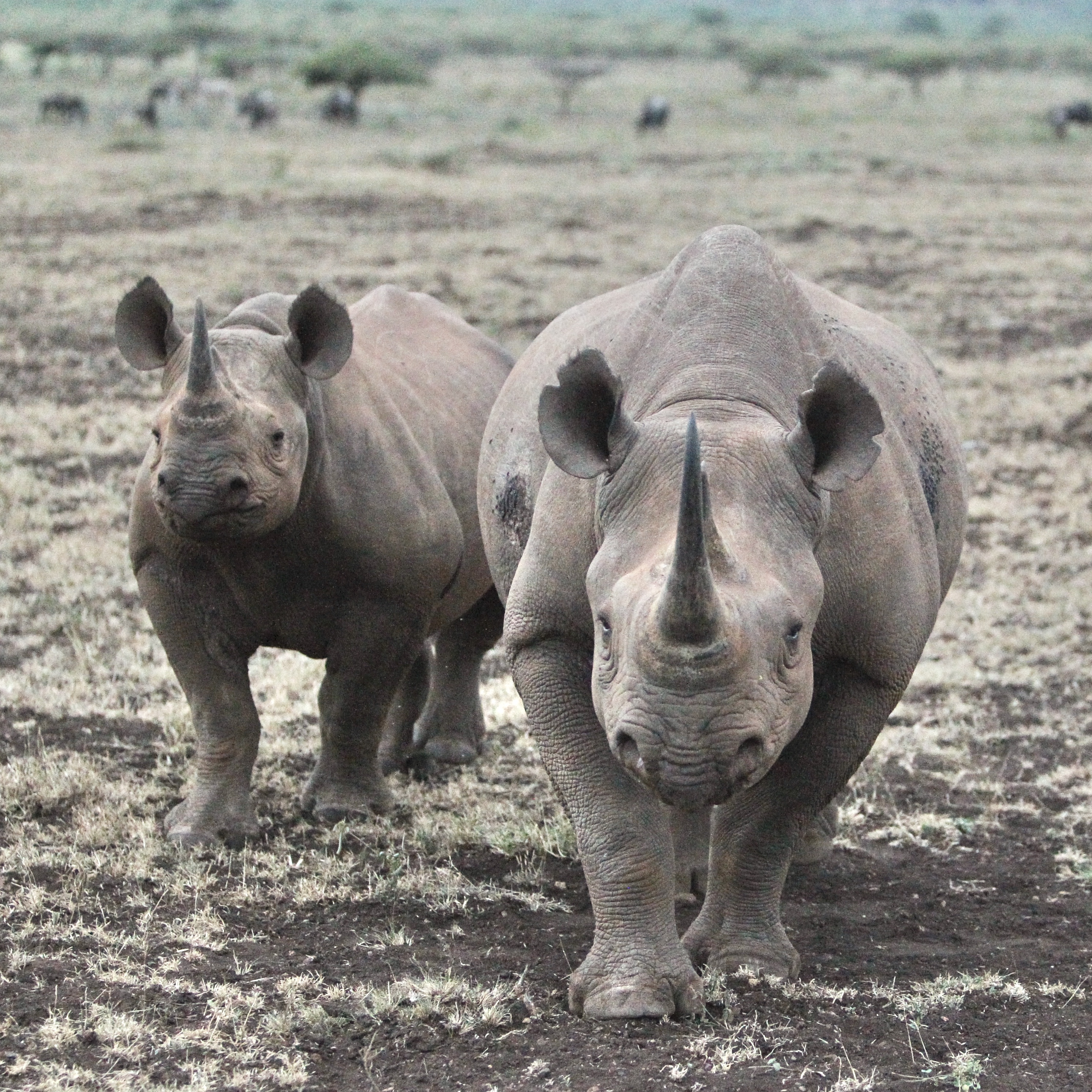 We are Black Rhinos. Usually we are very shy and do not like to be around people. But today we came and had a look … and then we ran away fast. How fast do you think we can run?